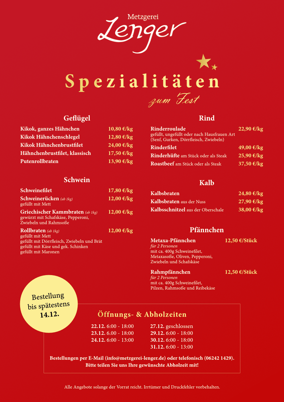 Bestellungen für Weihnachten (telefonisch wie per Mail) nehmen wir noch bis einschließlich 14. Dezember entgegen. Bestellungen, die danach eintreffen, können nicht mehr berücksichtigt werden.